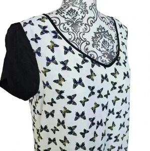 Sisley Dress Butterfly Print Black White Multi-colour Shift Dress Women's Large