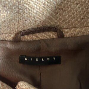 Sisley Women's Wool Pea Coat Herringbone Pattern Size Small