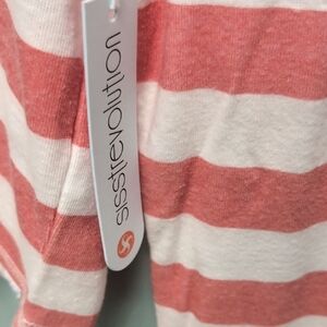 This long sleeve tee showcases a classic pink and white stripe pattern, perfect for a casual and comfortable look. The soft knit fabric ensures a snug fit, making it an ideal choice for everyday wear.