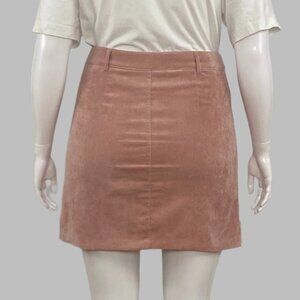 This Sisters Point short pink skirt in size large (L) combines fun and unique style with the cozy texture of corduroy. Featuring a convenient front zipper, it offers easy wear and a modern edge. Perfect for adding a playful yet polished touch to your wardrobe. Measurements were taken across garment when on flat surface: Waist: 16.5" (42cm); Length: 18" (46cm); Condition: Excellent.