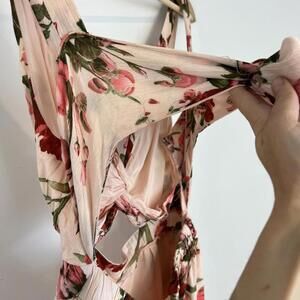 Sisters of the Tribe Women's Size 14 Red Pink Floral Jumpsuit Romantic Flowy Feminine summer cut out romantic