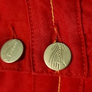red pants with contrast stitching