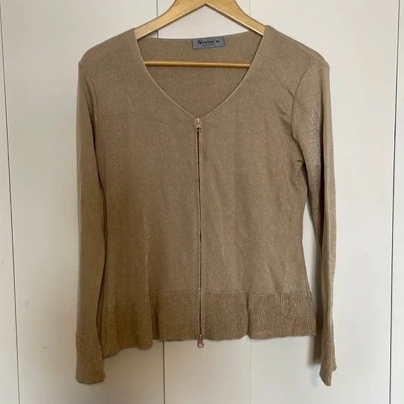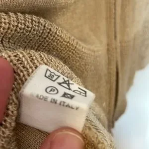 Siste’s Cardigan. Size medium (no size tag). Cotton, acrylic, nylon blend. Has a good shimmer. Very minor pilling / wear, loose threading at shoulder as pictured. Made in Italy. Approx lay flat measurements: 17 1/2” pit to pit, 22 1/2” shoulder to hem, 24” sleeve.