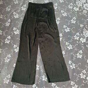 Sita Murt olive green high waisted wide leg satin pant . Side zip and button closure , unlined .
