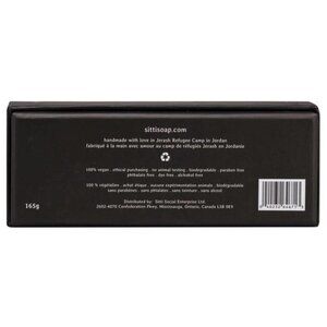 Three small Sitti Soap bars nestled inside our signature handmade "Sitti" gift box. Each box includes two original Sitti Soap bars, and one loofah Sitti Soap bar. With a poetic note inside, each box reminds the recipient that their gift is also giving back to others.