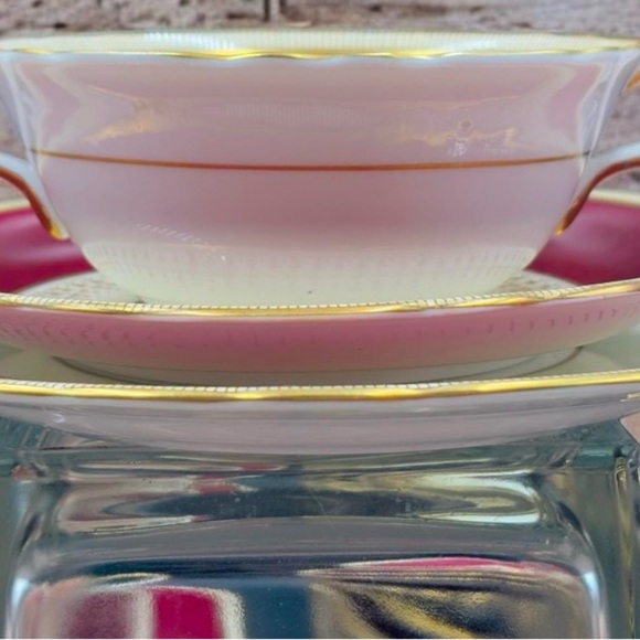 Add timeless elegance to your table with this stunning collection of vintage Aynsley china in the classic 7219 maroon design, an exquisite pattern that reflects Aynsley’s tradition of fine English porcelain craftsmanship. Renowned for their intricate designs and luxurious detailing, Aynsley has been a staple of fine china since 1775, often gracing royal tables and collectors’ shelves alike.