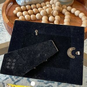 Stylish Solid Brass Silver Plated Photo Frame. Great product design and functionality. Stands in a horizontal or vertical position and can also be wall hung. Black Velvet Backing.