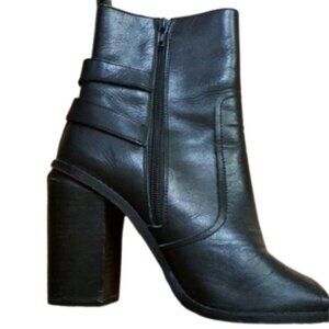Sixtyseven leather lots of zippers chunky heel open toes booties boots