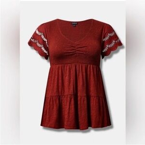 Size 0X Torrid Gauze Eyelit Burnt Orange Shirt