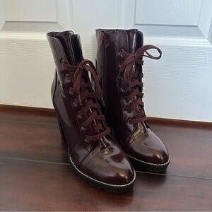 Size 10 Call it Spring Burgundy Purple Lace Up Combat Boots Heels
