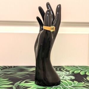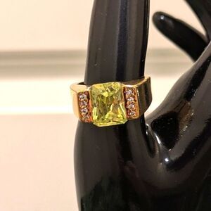 Size 10 Gold Plated Lemon Quartz and Faux Diamond Ring