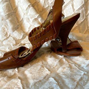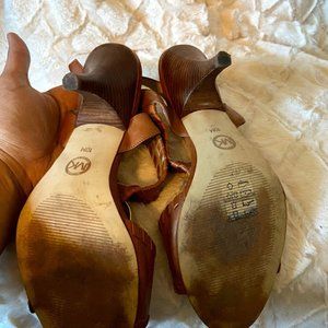 Worn, still in great shape, no scratches on the leather, gold MK emblem. Half inch heel. They are perfect for summer!