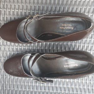Size 10 Simply Vera square heal brown glossy shoes with fine buckles