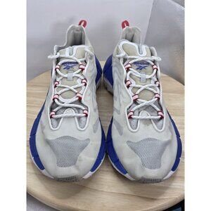 The product is a men's Reebok Zig Kinetica 2 running shoe in size 11. It features a lace-up closure, rubber outsole, and mesh upper material. The shoe is in a pure grey color with cobalt blue accents, making it a stylish option for casual wear. With a low top shoe shaft style and designed for running and jogging, these sneakers are suitable for summer, fall, and spring seasons. The Reebok Zig Kinetica 2 model is part of the Reebok Zig product line and offers comfort and performance for athletic activities.