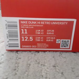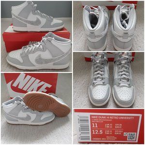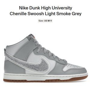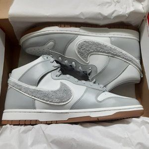 Size 11 - Nike Dunk High Retro University Chenille Swoosh Light Smoke Grey - NEW