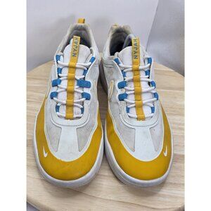 The Size 11 Nike Nyjah Free 2 SB Dark Sulfur is a stylish and comfortable lace-up sneaker designed for men who enjoy skateboarding or other athletic activities. With a low-top shoe shaft style and breathable mesh upper material, this shoe is perfect for summer, fall, and spring seasons. The rubber outsole provides durability and traction, making it suitable for outdoor adventures. Featuring the signature Nike brand and a solid white color with a touch of dark sulfur, this athletic shoe combines fashion and performance for the modern man.