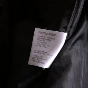 Overall I would say the condition of this preowned jacket is good. There are 2 very, very tiny white marks each about 1 mm, one on inside sleeve and one on side of jacket, as shown in last photo. One is above the 1/2" mark on the measuring tape and one is above the 2" mark on the measuring tape. They are really not noticeable at all when being worn. It is priced accordingly.