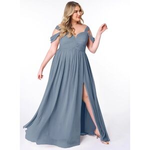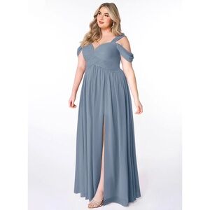 Size 12 Azazie Lianne A-Line Off the Shoulder Chiffon Dress - Twilight Color
