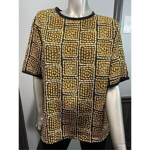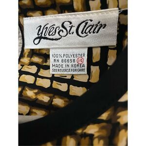 Size 14, Yves St. Clair vintage blouse in black & yellow ochre, button in back.
