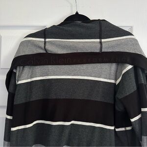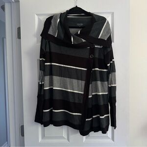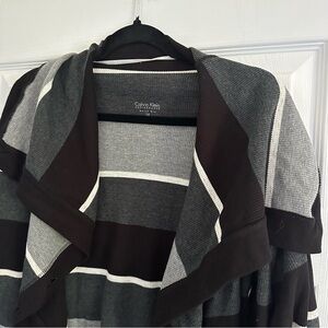 Size 1X Calvin Klein Performance Cardigan Striped Gray Black Waterfall Sweater