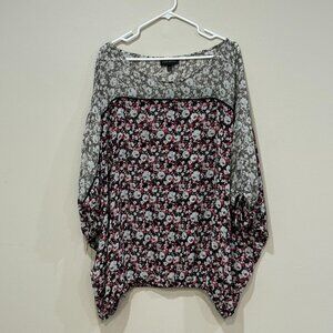 Size 26/28 Lane Bryant Floral Blouse - Grey, Pink, Black and White