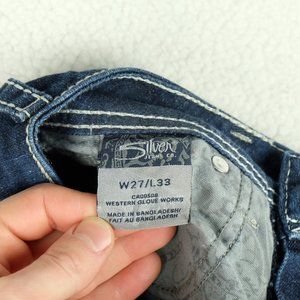 Silver Suki Womens Blue Jeans 27x33 Distressed Bootcut Stone Wash Whiskers Denim