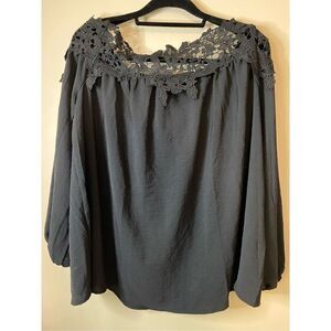 Size 2X, black/off shoulder blouse with lace detail & elastic smocking in back.