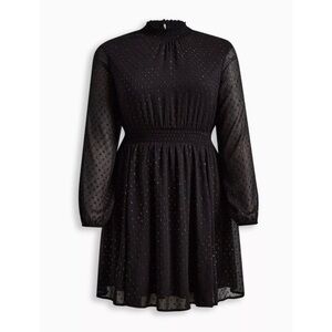 Size 3 (22-24) Torrid Black Mini Clip Dot Blouson Sleeve Dress