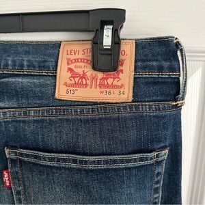Size 36 x 34 Levi Stratus 513 Blue Straight Bootcut Jeans Good Condition Not wear on hem (last 2 pictures)
