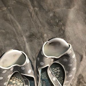 Size 39 Irregular Choice Mary Jane, peep toe, kitten heel, polka dotted, shoes.