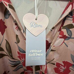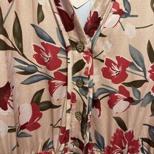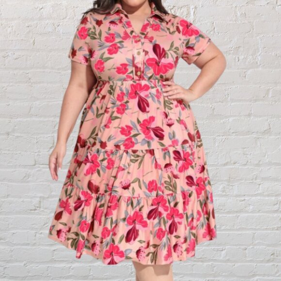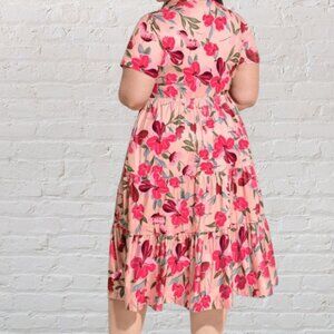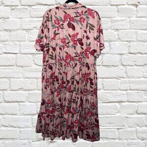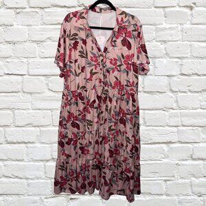 Size 3X Ritera Pockets Button Up Floral Polo Neck Shirred Midi Dress NWT