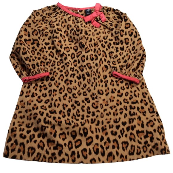 Size: 4 - Leopard Print Corduroy Dress w/ Pink Trim & Bow Detail