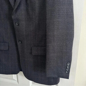 Size 42R Alfred Sung Luxury Wool Navy Blue Plaid Suit Jacket