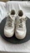 Youth size 5.5 Nike Air Force 1 sneakers -trainers -runners boast a timeless low-top silhouette, complete with a perforated toe box and a durable leather upper. The thick, chunky sole adds both style and comfort, making them a versatile choice for any occasion.