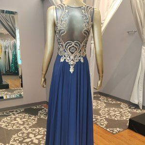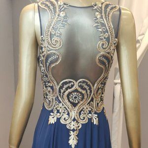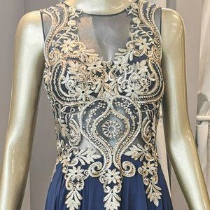 Size 6 navy/gold chiffon + embroidery formal/prom gown