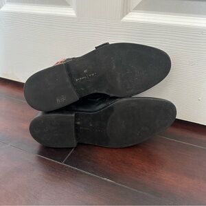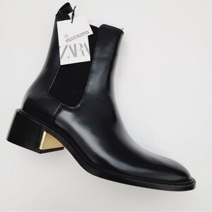 These stylish Zara Trafaluc ankle boots feature beautiful floral embroidery along the side for a unique, eye-catching look. The sleek black design is accented with three adjustable buckle straps and a side zipper for easy wear. Perfect for pairing with jeans, dresses, or skirts, these boots add a bit of edge while still feeling feminine and versatile.