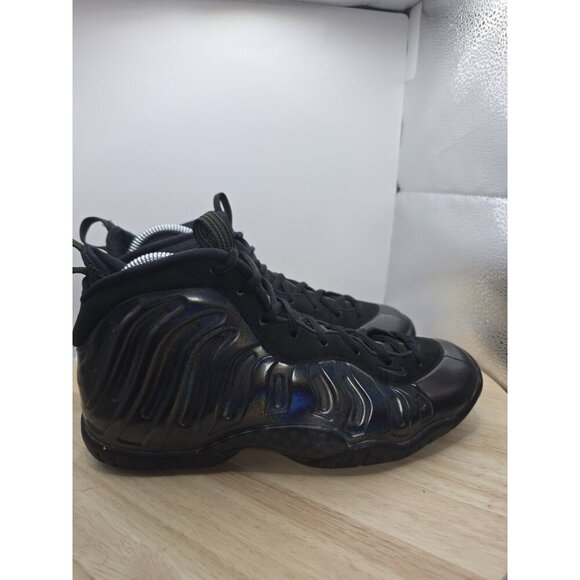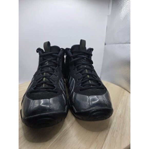 The Nike Little Posite One Mid Legion Green (644791-301) GS 6Y in size 7.5 is a stylish mid-top sneaker designed for women. With a solid black color and rubber outsole, these athletic shoes offer a comfortable standard shoe width with a foam insole. Part of the Nike Foamposite product line, these sneakers are perfect for everyday wear or sports activities, combining style and functionality in one fashionable package.