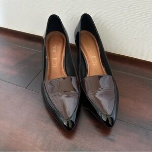 Size 8 Capelli Rossi Patent Leather Black and Burgundy Thick Chunky Heel Pump