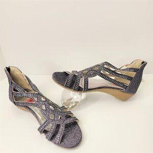 Ladies Silver Grey Rhinestones Sparkly Wedge Sandals