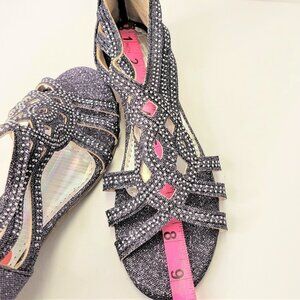 Size 8 Glitter Silver Grey Wedge Sandals Low Heels Flats Open Toe Shoes NEW