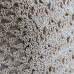 A delightful short crocheted dress in cotton, parts of which feel like reed or straw work. Perfect for a summer day at the beach or having cocktails in town.