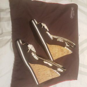 Super cute vintage Coach Wedge cork sandals- like new condition, never worn. Includes Dust Bag.