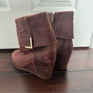 Size 8.5 Johnston & Murphy Brynn Burgundy Suede Wedge Zip Ankle Boots Shoes