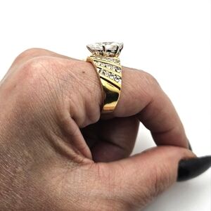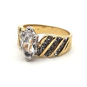 Size 9.5 Marquis Engagement Style Ring 14k Gold Plated Rhinestones CZ