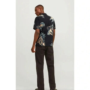 Size L Men’s Jacket & Jones All Over Print Vacation Black Polo Shirt