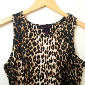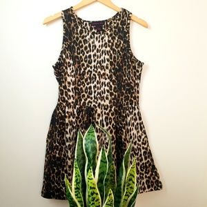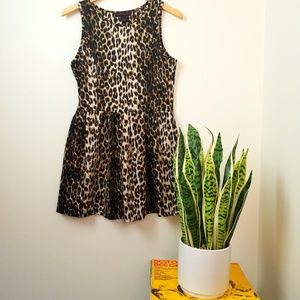 Description: Leopard print / crew neck baby doll dress, with playful feminine skirt.