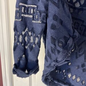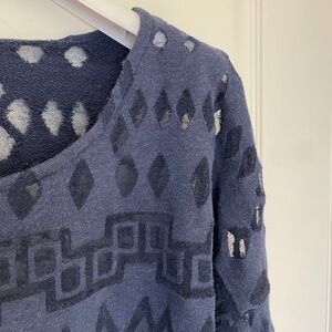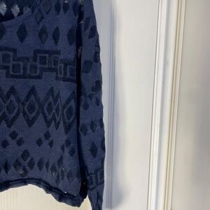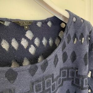 Size M Guess Blue Geometric Design Semi-Sheer Long Sleeve Knit Crop Top
