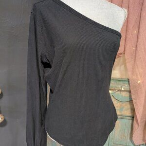 Size M Lululemon Washed Black Ribbed One Shoulder Bodysuit