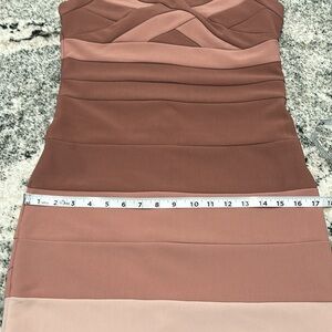 Size M dynamite dress, pre-loved in good condition. The class at the top of the zipper is missing as shown in pictures. But overall the dresses in really good condition.