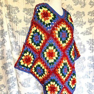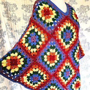 Size M to XL NEW Hand Crocheted Retro Rainbow Poncho